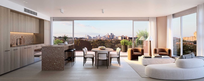 项目在建筑设计与室内细节上追求极致品质。每一套住宅均采用匠心定制的木作柜体、天然石材台面及高端 Miele 厨房电器,展现精致而富有层次的生活质感。宽敞的开放式布局结合充足自然采光,营造温暖而舒适的居住空间。顶层豪宅更配备开阔的起居空间、带有 Juliet 式老虎窗的楼上卧室,以及超大露台,可尽览悉尼 CBD 天际线的壮丽景观,呈现非凡的居住体验。