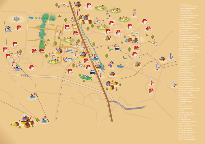 The Ponds别墅不仅是抢占价值的高增长区,在这里您更将获得零距离亲近大自然的生活方式。别墅区占地80公顷,房屋东西朝向,光照充足,可充分利用太阳能。社区内拥有6个湿地公园,足球场、网球场、游泳池、儿童游乐场、 4公里长的人行道和自行车道。