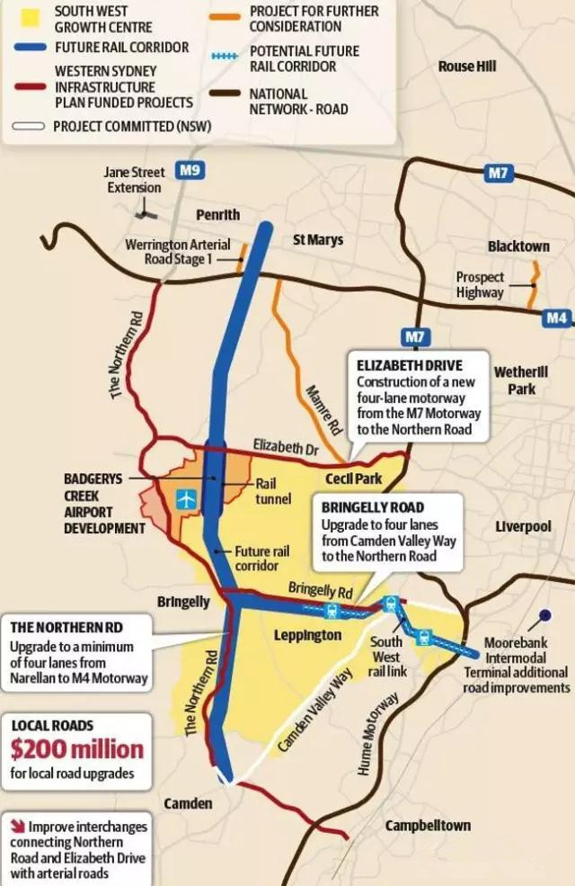为配合西南新机场的建设,为实现西南就业地区的蓬勃发展,新州政府投重资36亿澳元对西悉尼公路网进行升级。主要分为对The Northern Road和Bringelly Road的拓宽升级工程,以及M12的新建项目。