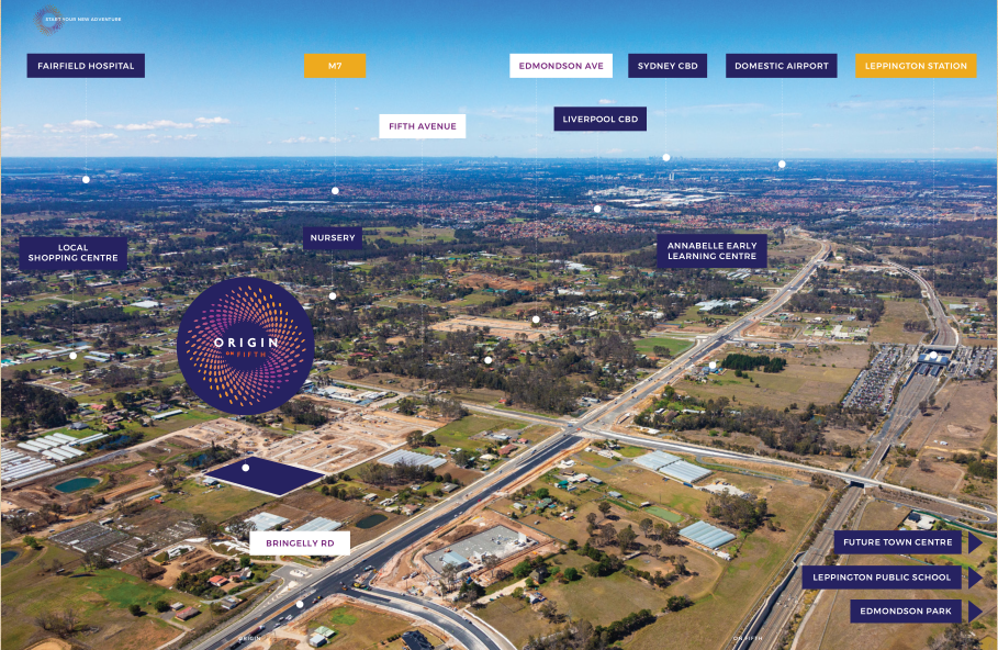 Origin on Fifth项目在Badgerys Creek以南,将成为下一个真正兴起的新区,距离新机场仅仅15分钟车程,位置够近,但又足以远离飞机起落时造成的噪音。新西悉尼机场在建设期间将创造11,000个工作岗位,机场将在正式营运五年后提供28,000个直接和间接工作岗位。因此作为距离新机场最近的住宅区,Leppington未来发展不可估量。