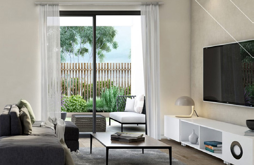 私人露台非常适合家庭活动,放松心情,并与家中的起居空间无缝连接,是娱乐的理想选择。 每个联排别墅还设有后车库和足够的额外存储空间。