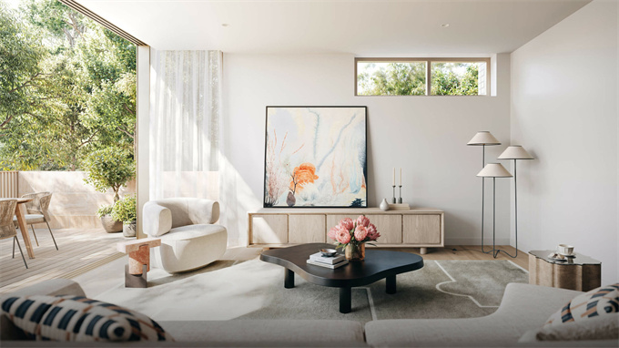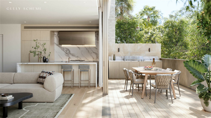Gordon 建筑采用传统的砖木结构,以现代形式重新演绎,采用多种精美材料。两种室内配色方案均取材于悉尼北岸的原生环境。Amaroo 反映了丛林、斑驳的光线和淡淡的桉树的色调。Gully 的色调更强烈,带您深入森林,其阴影更深,岩面纹理丰富。