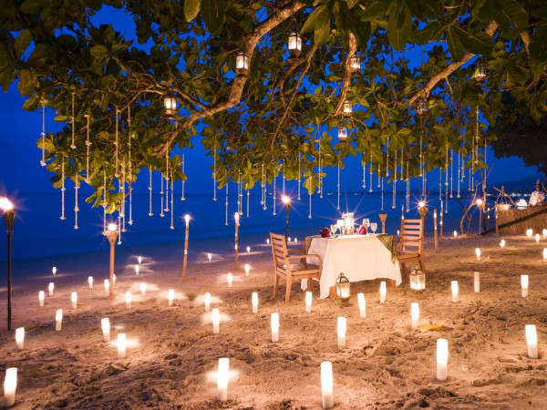 在泰国Khao Lak的Sarojin度假酒店有着全世界最浪漫的烛光晚餐,大大小小的蜡烛点亮了夜晚的海滩,仿佛全世界只剩你和眼前的他/她两个人。