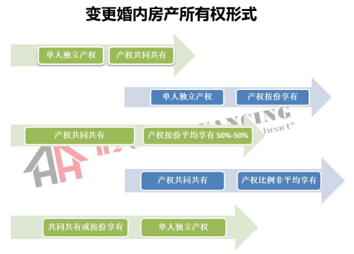 详细了解完婚内房产产权的各种形式,也许有的小伙伴萌生了变更产权的念头。那么我目前的产权可以如何变更?一张图就让你清清楚楚的了解——