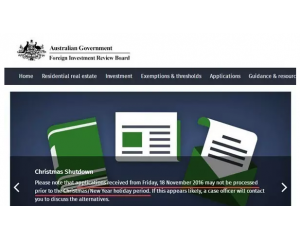 根据FIRB官方网站公布的最新消息显示,从2016年11月18日起,FIRB(外国投资复审委员会)将全面暂停接受来自海外的任何新申请。 根据公告内容,FIRB将会在今年圣诞节和新年期间暂停工...