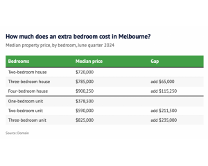 在墨尔本,购房者可能得多付11.5万澳元才能买到有第四间卧室的独立屋,这使得一些买家对额外空间的成本望而却步。 Domain的数据显示,墨尔本四卧室独立屋的中位价在过去一年上升...