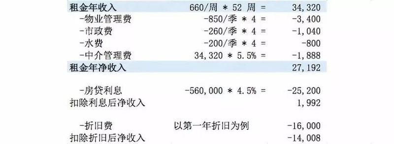 假设你80万澳元的房子,租金660澳元/周,租金以外的支出包括利息、物业管理费、水费、房屋折旧等等。贷款7成,56万澳元。