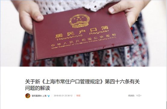 上海公安局官方微博号@警民直通车-上海于昨晚北京时间23点发表了文章《关于新<上海市常住户口管理规定>第四十六条有关问题的解读》,解答了对于注销户籍的疑问: