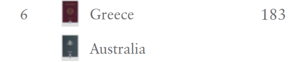 6、澳大利亚、希腊,183个;