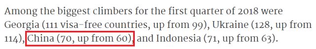 中国护照也是免签国数量增加最快的护照之一!