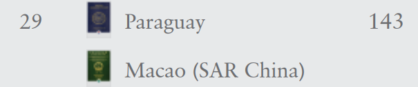 29、中国澳门,143个。