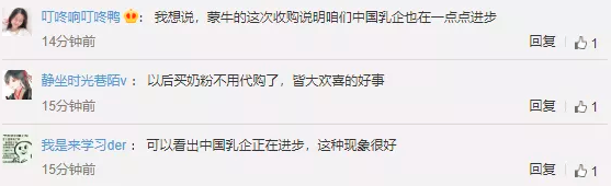 还有很多网友对蒙牛表示支,认为这是中国乳制品行业的发展进步: