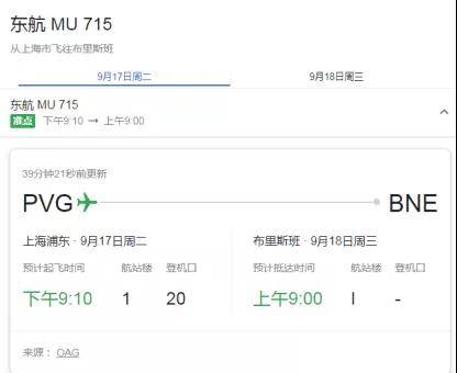 航班MU715在16日凌晨2点再度起飞,并于当地时间16日14时抵达布里斯班。