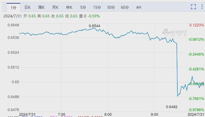 澳元汇率瞬间跳水:7月中旬来连续暴跌