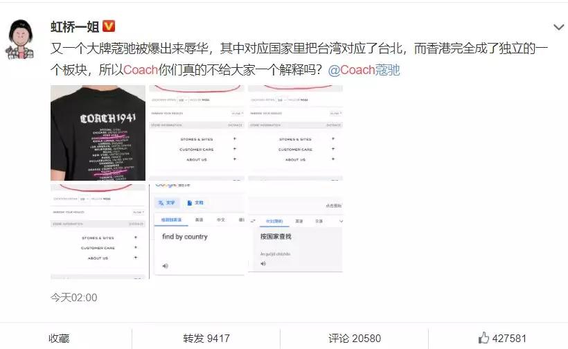 今天凌晨2:00:Coach中国官网崩了,原因是网民爆料,一款Coach蔻驰T恤背面分两列印有城市和国家名称,Coach同样涉嫌分裂中国。