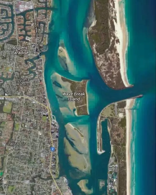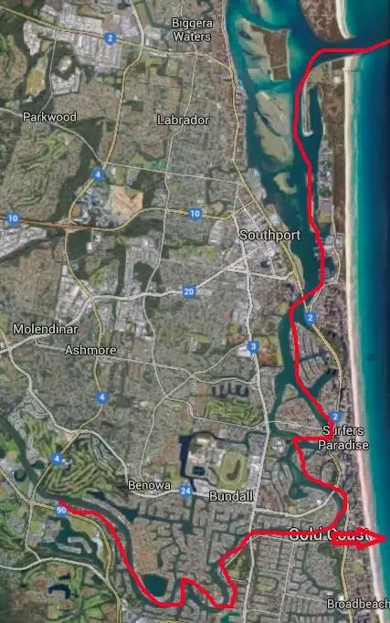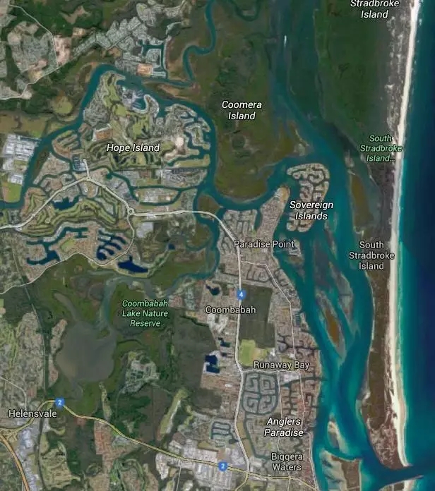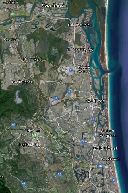相信大家现在也很容易看得到了,黄金海岸其实是靠两条河(水龙)形成的城市。那我们来看看南面的这一条河: