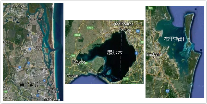 大家可以比较一下,黄金海岸的河的大小,还有包围的水面的大小,如何可以跟布里斯班相比?更加别说跟墨尔本相比了。因此黄金海岸注定整个城市规模,要比布里斯班小。