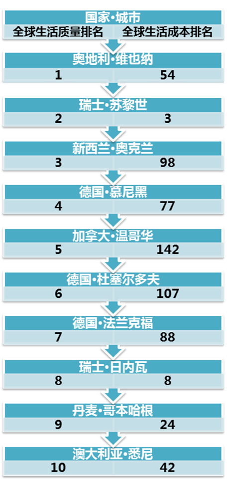 报道称,美国人力资源咨询公司Mercer进行这项一年一度的调查已经22年,该调查涵盖了五大洲209个城市,从住房到交通,再到咖啡和啤酒的价格,此项调查掌握了各城市200多项商品的价格,目的就是让大型公司掌握其向不同城市派驻雇员所需的生活成本。