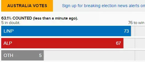 2. 自由党的席位数量未能达到76个,澳洲将出现悬峙议会。