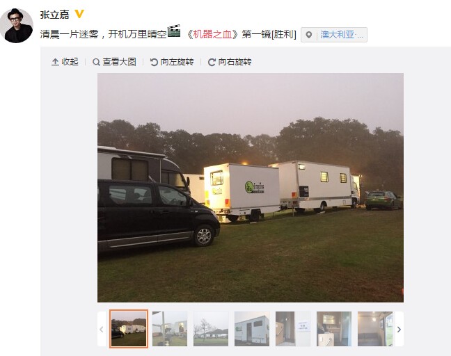 据悉,《机器之血》的主演为成龙、罗志祥以及欧阳娜娜,导演为张立嘉。而张立嘉也在微博上证实,影片的确在澳洲开拍。