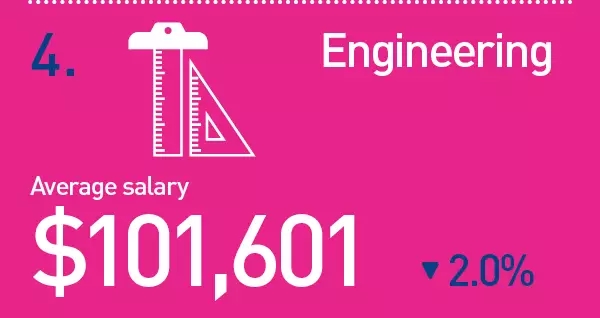 紧随其后的是工程行业,平均年收入也达到了$101,601,但是相比2015年也跌了2%。