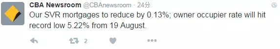 你看消息一出,CBA银行第一个跟进,宣布利息下调0.13%!