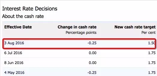 据Yahoo新闻报道,澳洲储备银行在今天召开每月例会之后将官方利率从1.75%降低到1.5%。
