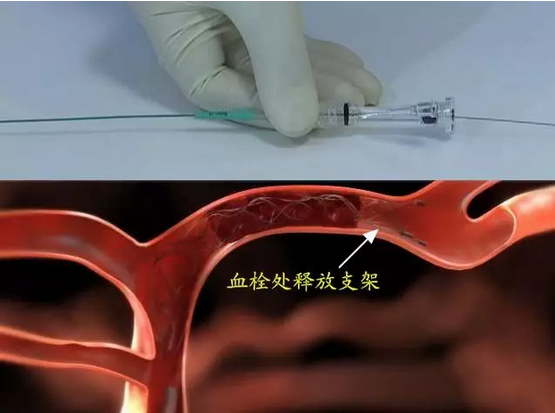 这个支架能够“抓住”血管中的血块,因此,支架在被抽出的同时,就会带着血块一同从患者的体内出来。