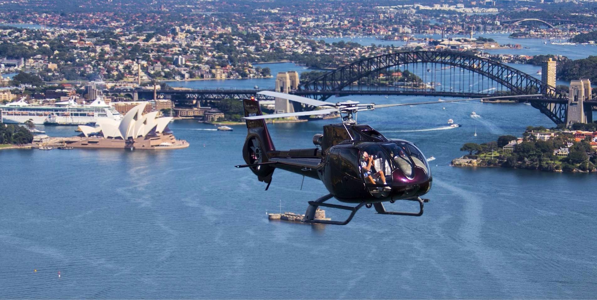 搭乘直升机,你可以一边俯瞰悉尼歌剧院、海港大桥、塔隆加动物园(Taronga Zoo)、邦迪海滩(Bondi Beach)、蓝山(Blue Mountains)的美景,一边在空中迎接新年的朝阳。