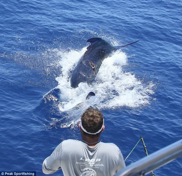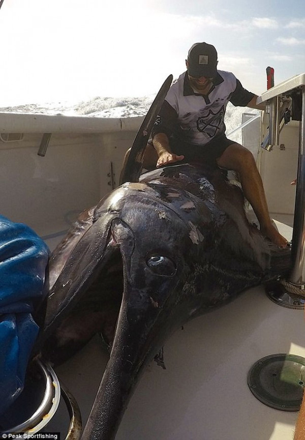 据《每日邮报》报道,Eddy Lawler和Clay Hilbert来自西澳,本周一他们经过2小时的奋战,在Exmouth捕获了一条近半吨重的蓝枪鱼,称重后发现有494公斤,打破了在1999年创下的452公斤的记录,成为澳洲史上被捕获的最大的蓝枪鱼。