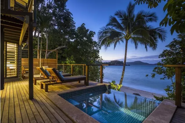 拥有7间套房的BEDARRA ISLAND RESORT是大堡礁上一个经过重新改造的老牌酒店,每间都有私人小型游泳池,沙发床,阳光露台和室外淋浴。因为BEDARRA ISLAND的隐蔽,很多明星都会来这里度假呢!