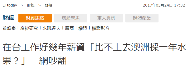 《在台工作好几年薪资「比不上去澳洲采一年水果?」网吵翻》。