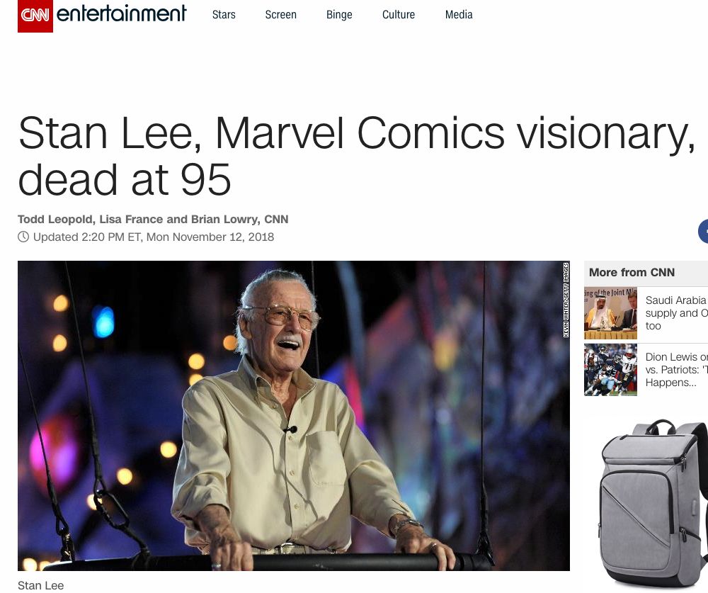 据CNN报道,当地时间周一上午,斯坦李老爷子去世,享年95岁