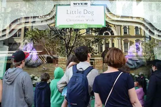 2015年,正值Myer圣诞橱窗诞生60周年之际,为了向墨尔本致敬,当年的圣诞橱窗设计以一本墨尔本非常有名的儿童读物《Little Dog and the Christmas Wish》为原型,故事讲述Little Dog和Jonathan是一对好朋友, 但是在圣诞夜那一天,Little Dog在一个繁忙的城市中迷了路。