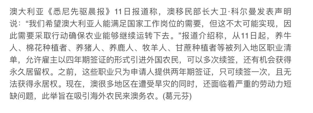 所以澳洲政府希望通过这个新举措,来吸引海外农民来澳务农。