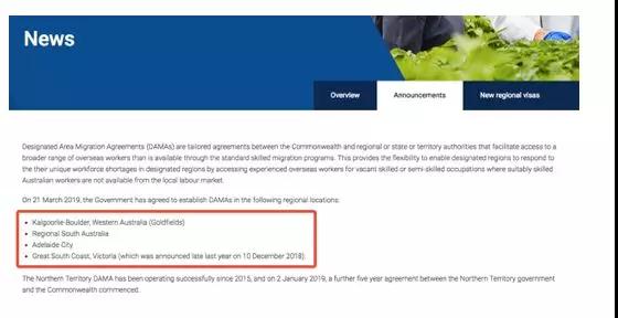 2、DAMA最新的政策,除了之前的北领地,现在又增加了一些地区,见下图,值得注意的是,南澳首府阿德莱德整个地区都属于DAMA,这个是非常好的一个变化。