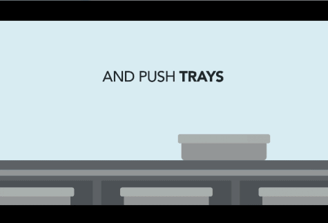 每一个空位下方都放置着一个托盘,大家可以走到任何一个空位上,拿起下方的托盘,