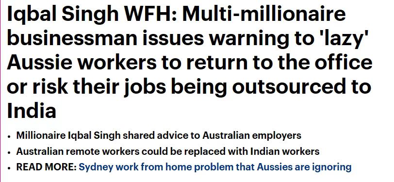 澳洲的企业家认为,大批的廉价劳动力对企业来说是一个减轻成本的机会。而innovation consultants公司的Iqbal Singh表示:“澳洲的打工人如果不想被解雇,就别想着天天在家办公和偷懒”