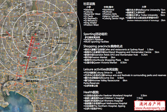 位于墨尔本最成熟的东北区富人地带,拥有宁静上品生活的同时,生活娱乐设施无所不备,散发活跃姿彩的生活元素,为人熟知的Brunswick、Carlton或Preston区,都是购物、娱乐和休闲的最佳胜地。