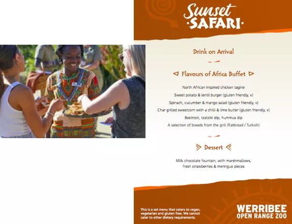 夜间活动门票还会包括非洲特色食物自助餐,让你仿佛就置身于非洲大草原里。而所有的门票收益将会捐给乌干达犀牛基金会用于维护在非洲的占地7000公顷的Ziwa Rhino庇护所,用来保护那些濒临灭绝的非洲动物。