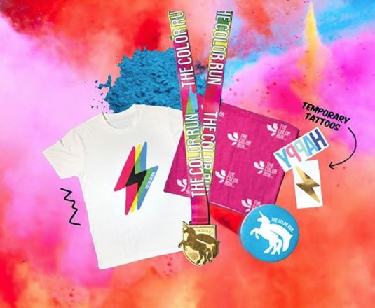报名后,会提供一个包裹,包括彩虹跑T恤,眼镜,发带等各种装备,跑完后的彩色衣服就可以不用洗啦,当作彩虹跑的染色纪念!
