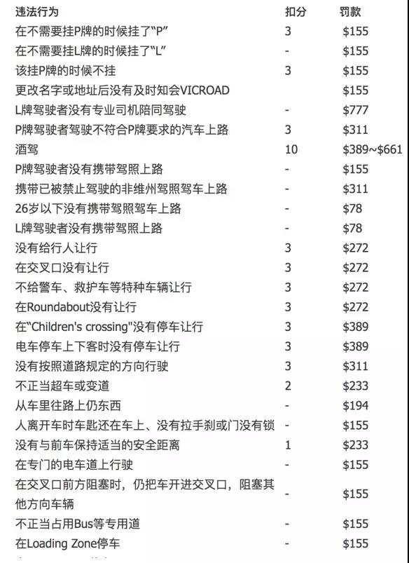 最后,为大家科普一下各项违规罚款扣分的详情,希望大家不要触雷: