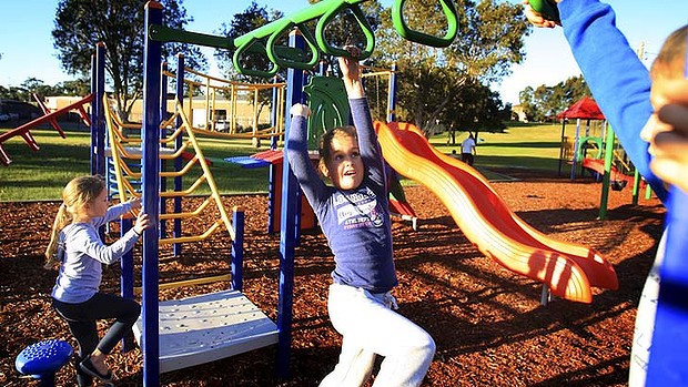 儿童在毗邻格雷斯坎贝尔保护区旁边的一个游乐园中玩耍。(图片来源:《悉尼晨锋报》)