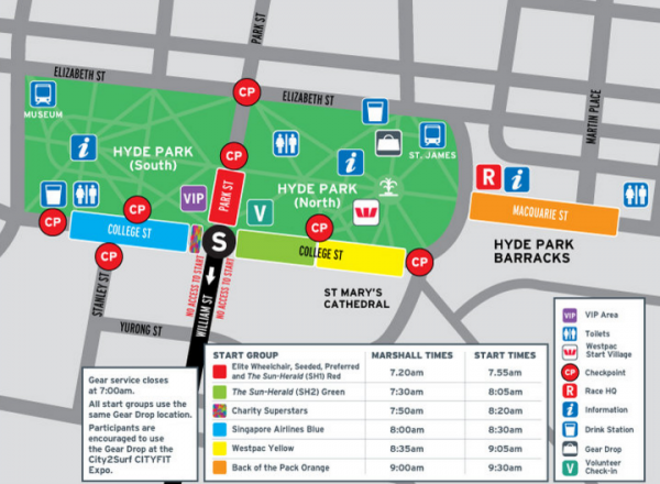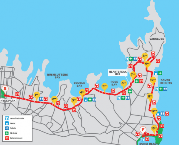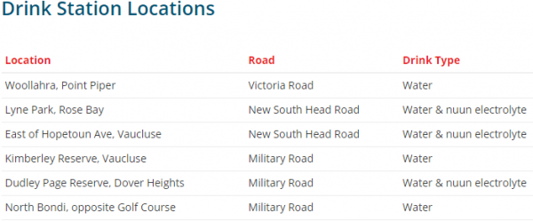 City2Surf官方提示大家,请带好水杯,在饮水点可接水饮用。下图为饮水点: