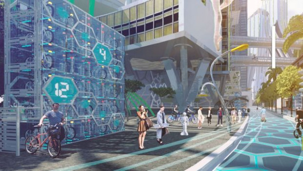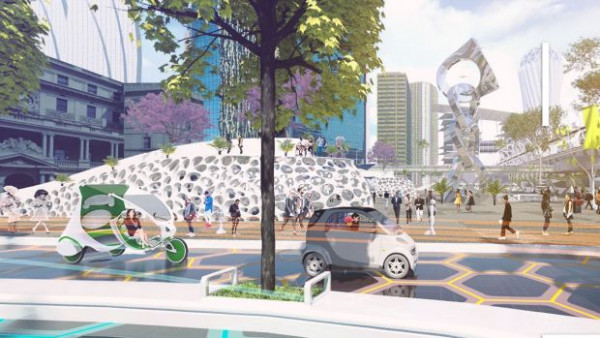 未来街道的特色是,公园长椅有手机和笔记本电脑充电器,街灯能对不断变化的天气条件做出应变,还有无人驾驶的电动穿梭巴士。有绿墙和垂直花园,草坪周围有电车轨道和智能垃圾桶,丢垃圾的时候会说“谢谢你”,当储存满时会自动提醒有关部门进行清洁。而树冠也将被充分利用,比如为街道降温、吸收所有能量,大幅降低空气污染。