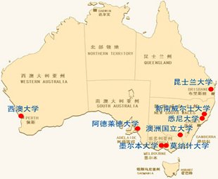 澳大利亚大学分布图 日期:2012-11-01 14:03:54 点击:1462 好评:0