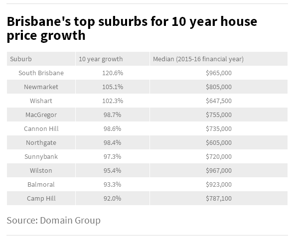 如果你10年前在布里斯本的South Brisbane, Newmarket和Wishart这3个城区买了房,那么你在去银行的一路中估计会笑翻,因为这里的房价在10年时间里增长了1倍多。