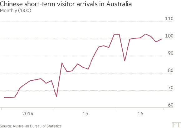 澳洲一年接待的中国入境游客在过去5年期间增加了一倍多,达到120万人次,仅次于来自新西兰的游客。中国游客每次旅行平均花费为8000澳元,其他国际游客为5000澳元。