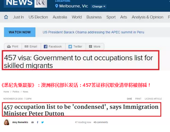 除此之外,联邦移民部长Peter Dutton还表示,联邦政府近日有意减少符合457签证需求的海外技术移民职业列表。