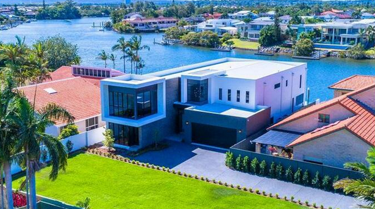 据了解,这套物业位宽滩水域(Broadbeach Waters)兰姆街(Lamb St)16-18号,是一套带5卧室的海滨物业,面积为1538平方米。其内部装修非常奢华,除了门厅有7米高之外,还有媒体室、娱乐室和专门的酒柜。外面有一个河畔泳池、露天的娱乐空间、内置的烧烤厨房、还有一处船用斜坡道、船屋和浮码头。房子的一边还附带着另一处生活空间,同样为2层,有独立的出入口和楼梯。